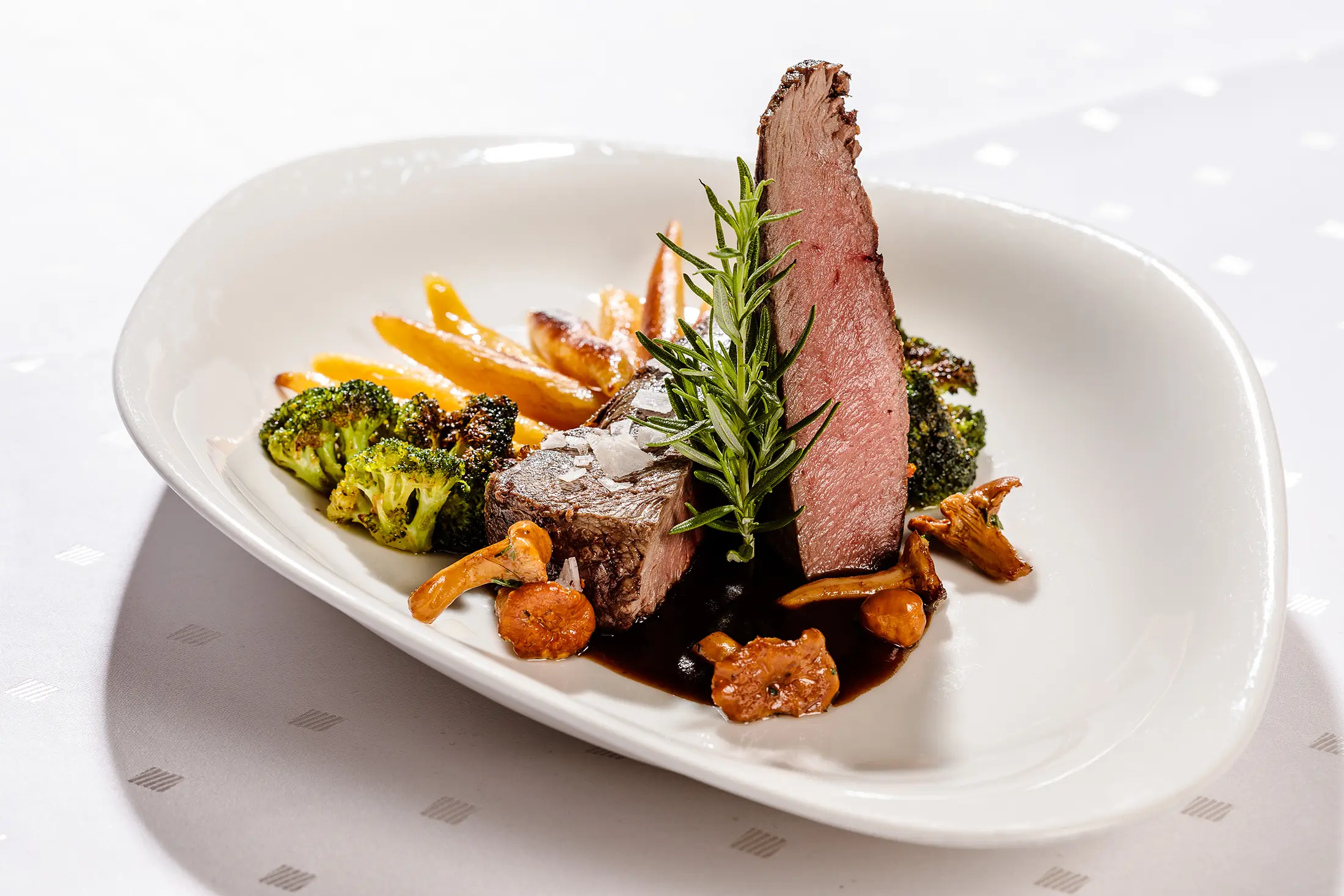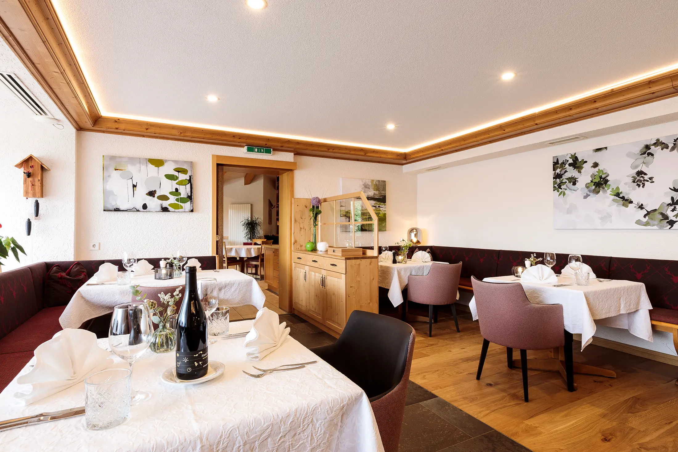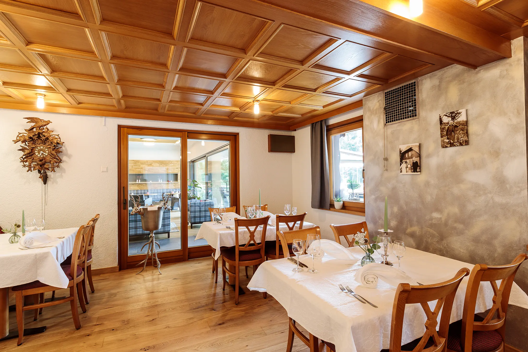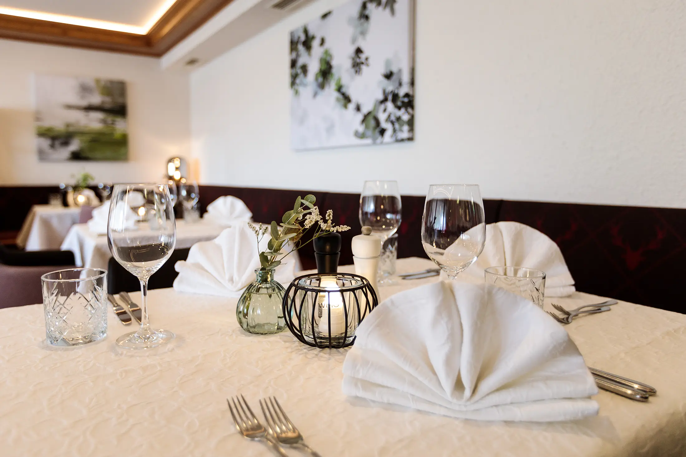 Unser Restaurant bietet den passenden Rahmen für genussvolle Stunden – ob zum Mittag- oder Abendessen, für Familienfeiern oder kleinere Veranstaltungen. In stilvoller Atmosphäre genießen Sie regionale und saisonale Küche im Restaurant, in den separaten Räumen oder auf der Sonnenterrasse.